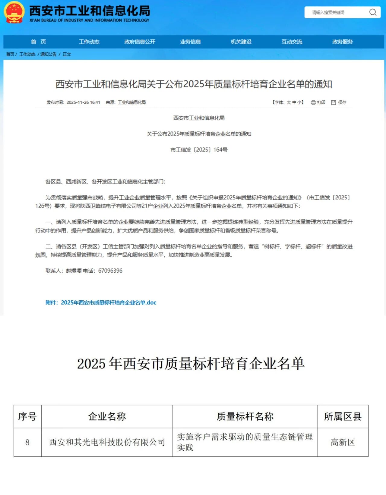 喜讯一 入选西安市2025年质量标杆培育企业
